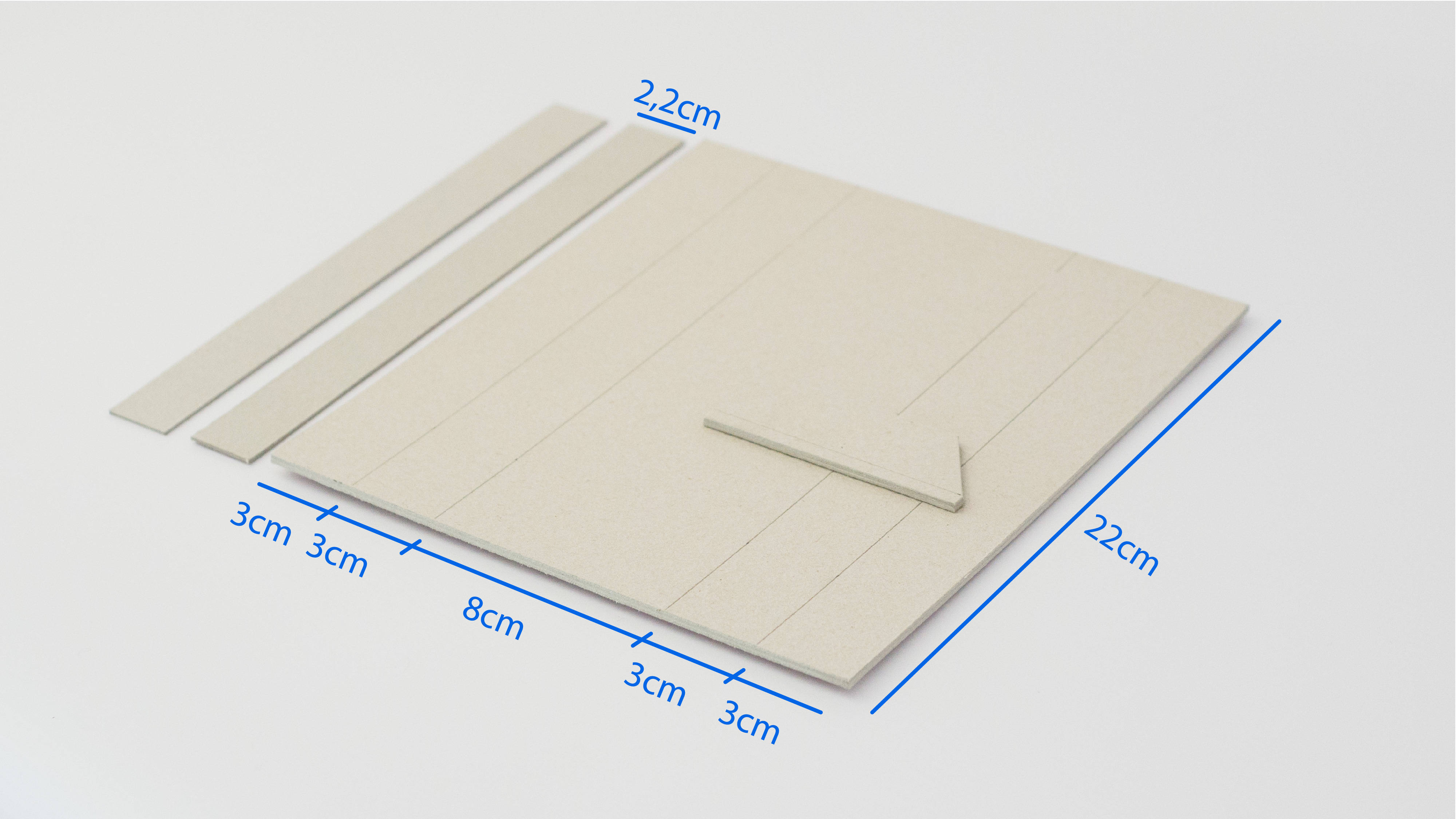 En estas imágenes vas a poder ver las medidas que tienen que tener las diferentes piezas de la cuna. Es importante que sepas que todo puede adaptarse, podés hacerla más larga si trabajás en formatos grandes de papel y podés usar otros espesores de cartón. De todas las veces que construí y enseñé a construir esta cuna los mejores resultados los obtuve trabajando en cartón de 3mm por su resistencia y durabilidad, sobre todo en la base que es el lugar donde vamos a pinchar con el punzón y se va a deteriorar antes que cualquier otra parte.