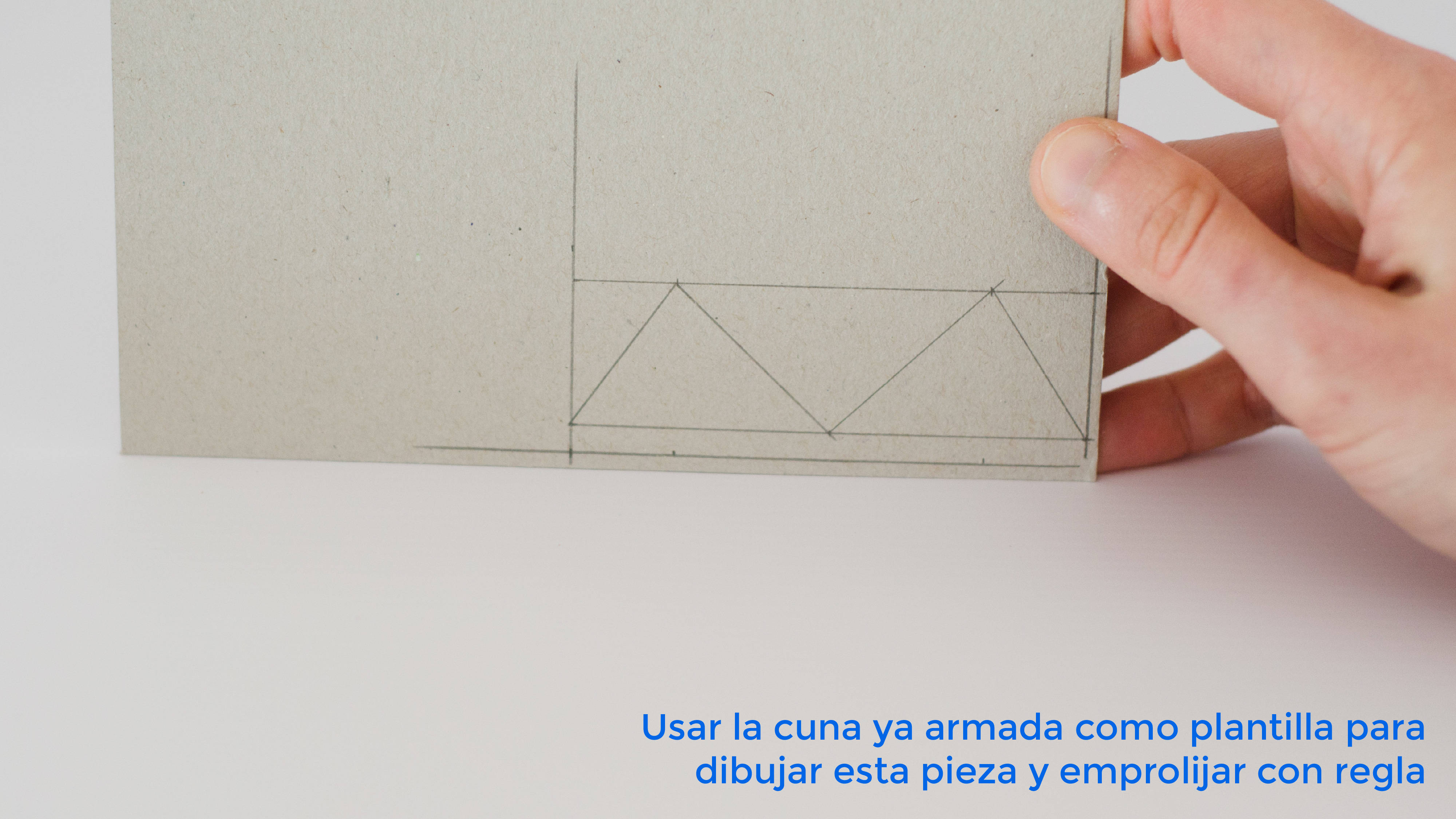 El corte que nos va a permitir troquelar la base de la cuna para plegar el cartón hay que hacerlo en varias pasadas suaves del cutter, nunca una sola pasada fuerte, ya que es muy probable que de esa manera terminemos cortando el cartón por completo.